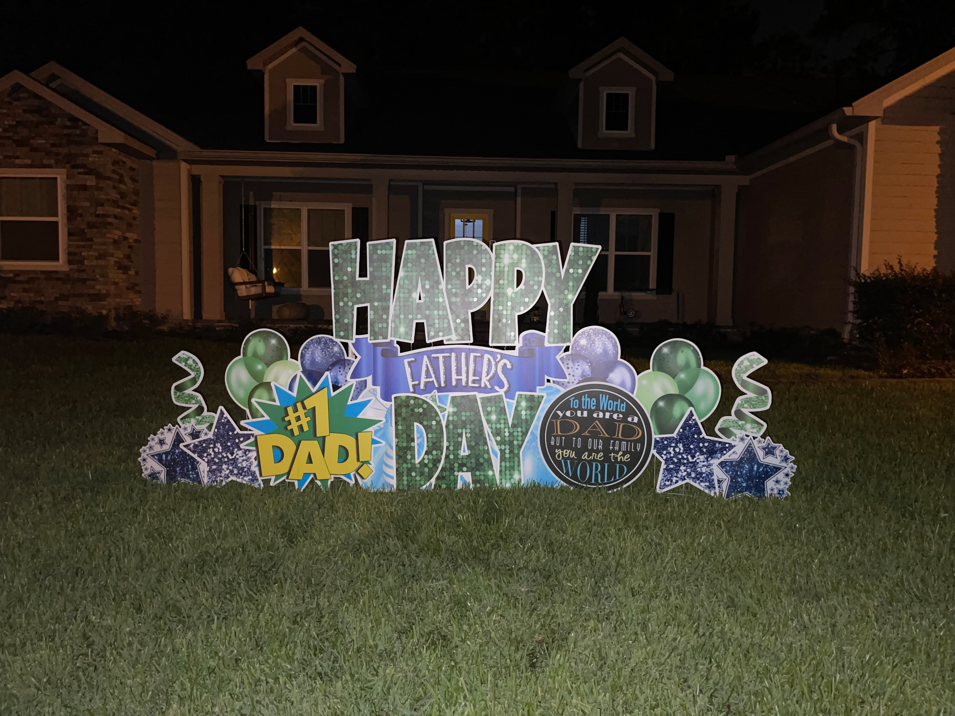Our Father's Day Greetings start at $75 for a one-day rental of a Large Greeting that says "Happy Father's Day" delivered for Sunday, June 16, 2023.